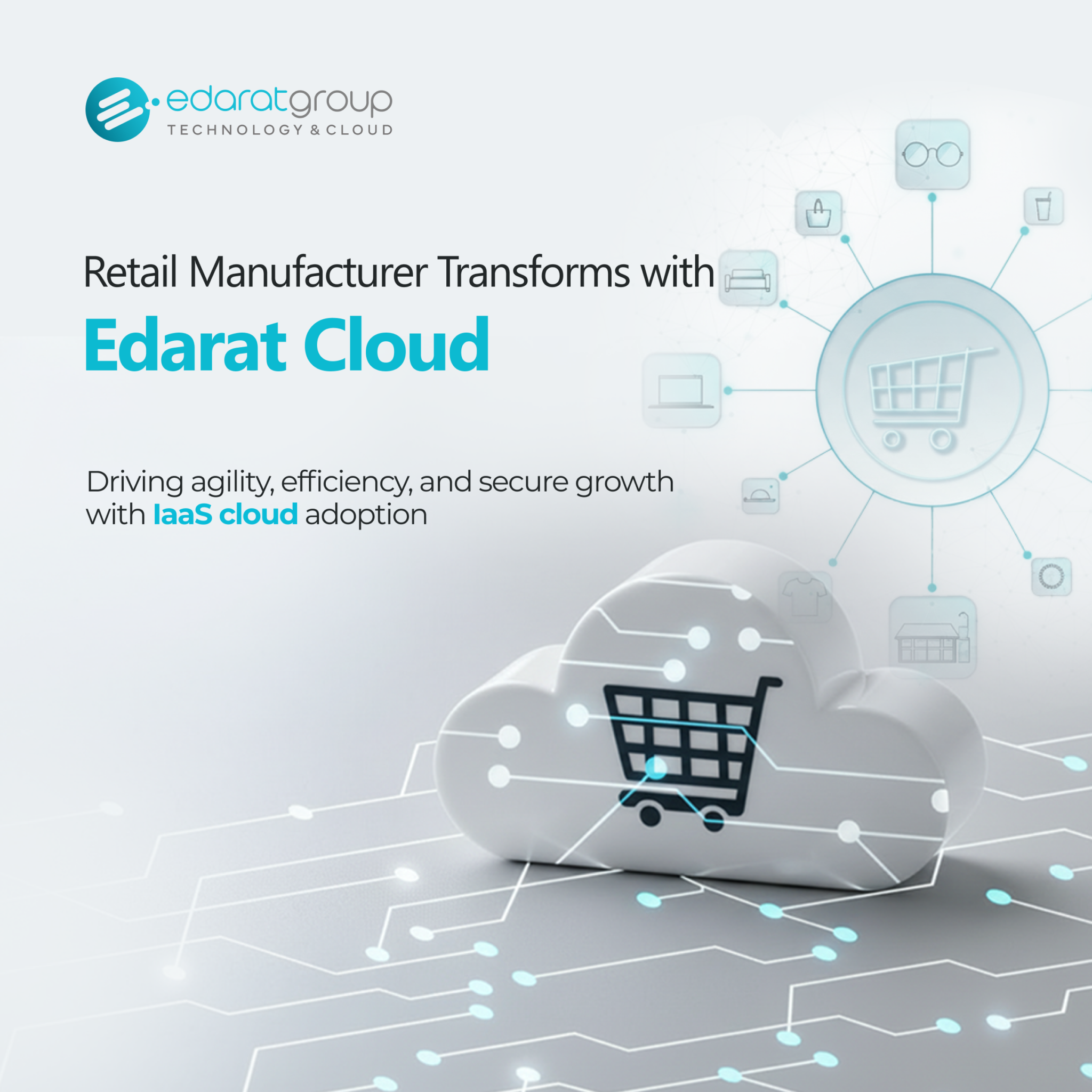 To increase efficiency, go to market faster, eliminate IT investments, shift to an agile operating model and enable better collaboration between business and IT teams a leading retail manufacturing group opted for an Infrastructure as a Service (IaaS) cloud deployment model on Edarat Cloud giving it the flexibility needed to meet future needs while reducing complexity and maintaining security and compliance requirements.